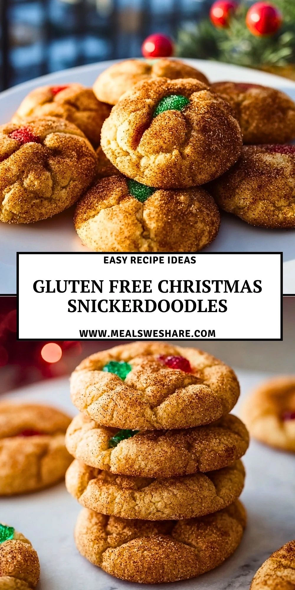 Keywords: gluten free christmas snickerdoodles, gluten free cookies, christmas cookies, easy holiday dessert, cinnamon sugar cookies, festive cookie recipe