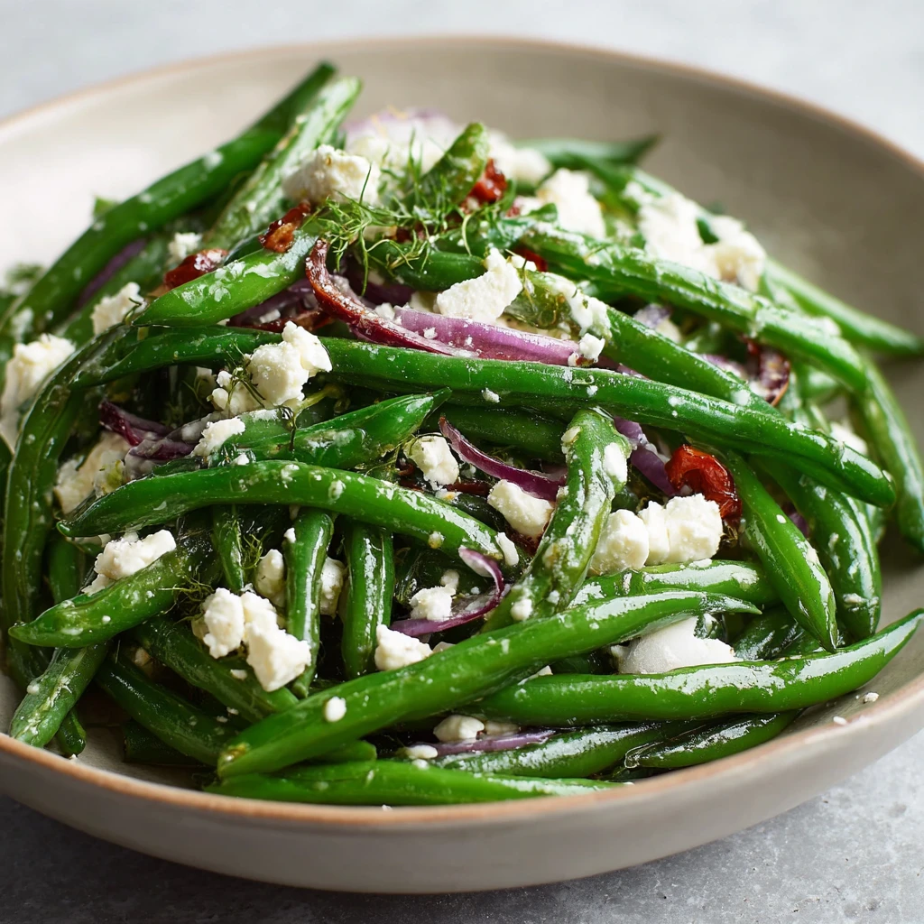 Green Bean and Feta Salad is the kind of dish that bridges the gap between refreshing and indulgent. Crisp-tender green beans tossed with crumbled feta, slivers of red onion, sun-dried tomatoes, and fresh herbs create a vibrant medley of textures and flavors. With just a light olive oil dressing to tie it all together, this salad manages to be both satisfying and light—the perfect side or even main on warmer days.