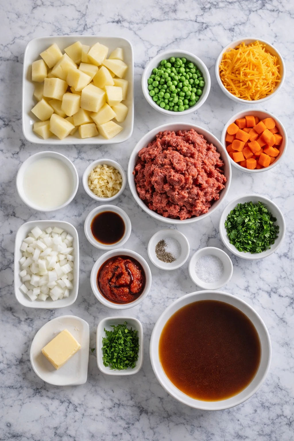 The ingredients in Ground Beef Shepherd’s Pie are simple, but each one plays an important role in building a rich and balanced casserole.