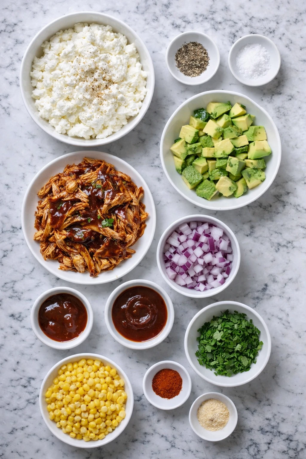 Ingredients for the High Protein BBQ Chicken Cottage Cheese Bowl