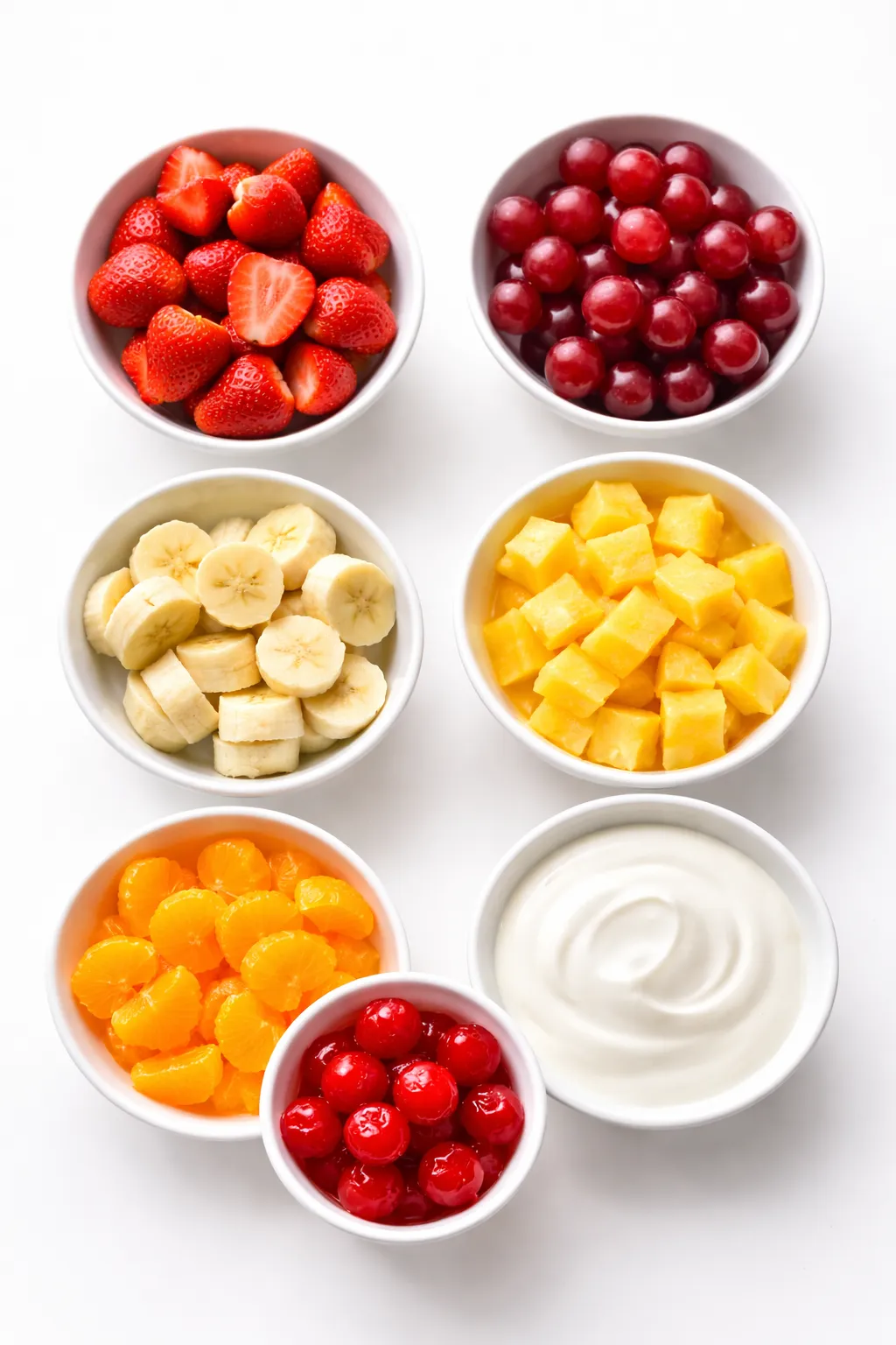 1. Wash the strawberries and grapes thoroughly. Hull and halve the strawberries, then slice the bananas just before mixing to avoid browning.