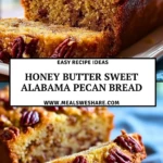 Honey Butter Sweet Alabama Pecan Bread is a Southern classic that brings together the richness of pecans, the sweetness of honey, and the warmth of homemade comfort. Whether you’re baking for brunch, gifting to a friend, or treating yourself to something special, this bread hits all the right notes. Make it once, and it’ll be a new favorite in your baking rotation.