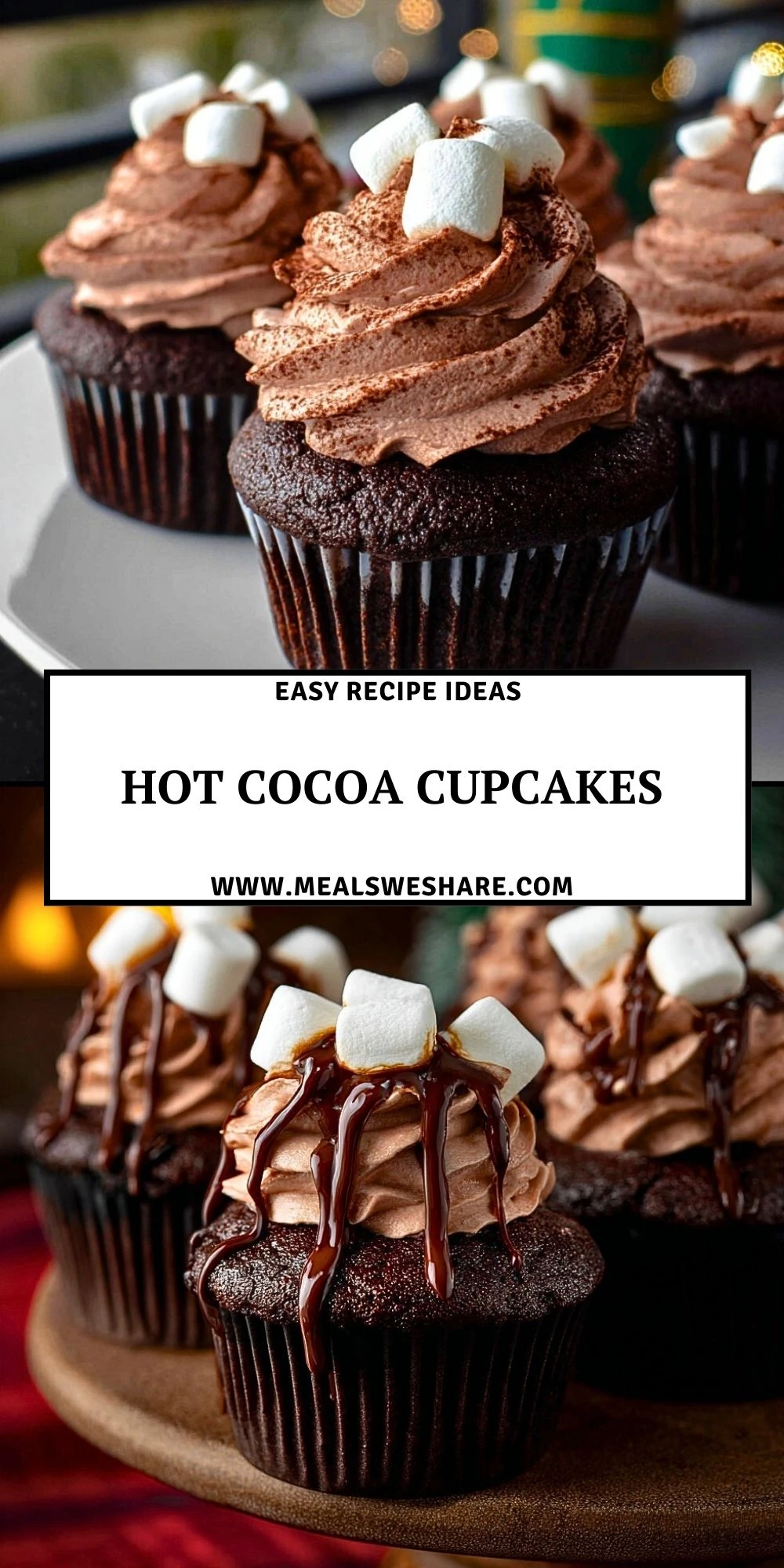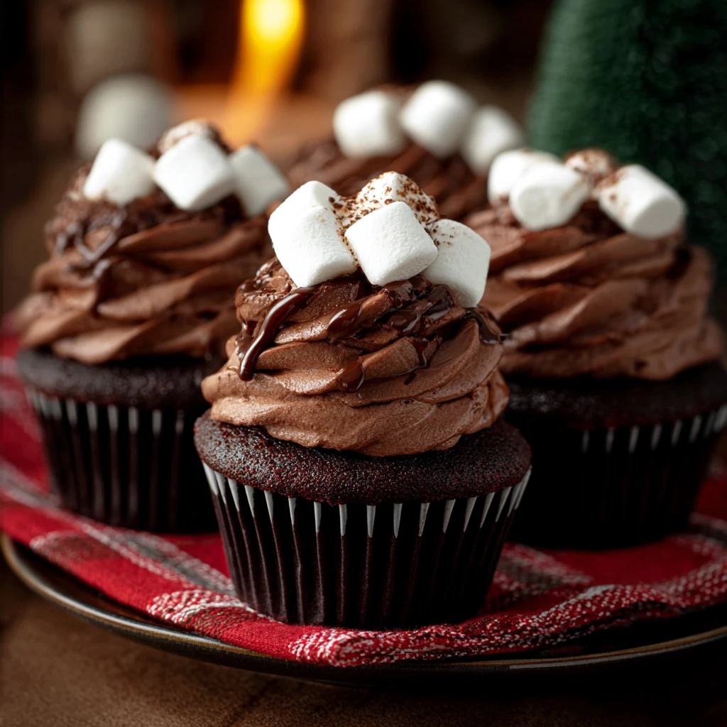 Keywords: hot cocoa cupcakes, chocolate cupcakes, holiday dessert, easy dessert recipe, winter dessert, chocolate frosting, marshmallow cupcakes, food ideas, easy recipe