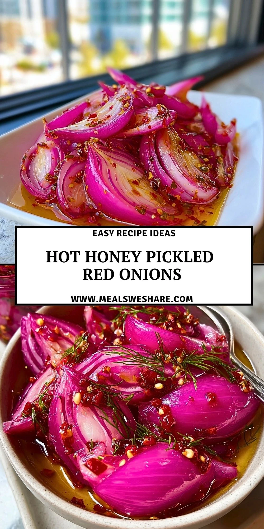 Keywords: hot honey pickled red onions, quick pickled onions, spicy pickled onions, easy recipe, healthy snack, meal prep condiment, taco topping, sandwich topping, dinner ideas, food ideas