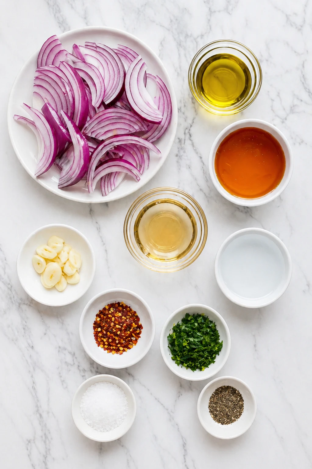Red onions: These are the base of the dish. Their natural sweetness, crisp texture, and deep pink-purple color make them ideal for quick pickling.