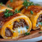 Golden, gooey, and outrageously delicious—these Irresistible Garlic Butter Cheeseburger Rollups are about to become your new obsession. Picture buttery, golden-baked rolls filled with juicy seasoned beef, oozing melted cheddar and mozzarella, and brushed with fragrant garlic herb butter. They’re everything you love about a classic cheeseburger, wrapped in a warm, flaky crust and made perfectly snackable.