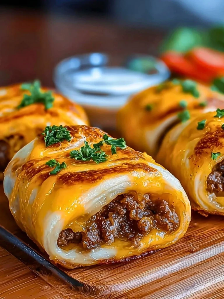 Get ready to wow your taste buds with these Irresistible Garlic Butter Cheeseburger Rollups. Perfect for a quick dinner, party appetizer, or fun snack, these cheesy beef-filled bites are golden, buttery, and bursting with classic cheeseburger flavor. Ideal for busy weeknights, party food ideas, or comfort food cravings, this easy recipe is a hit with both kids and adults. A must-try for fans of quick dinner ideas, savory snacks, and cheesy indulgences!