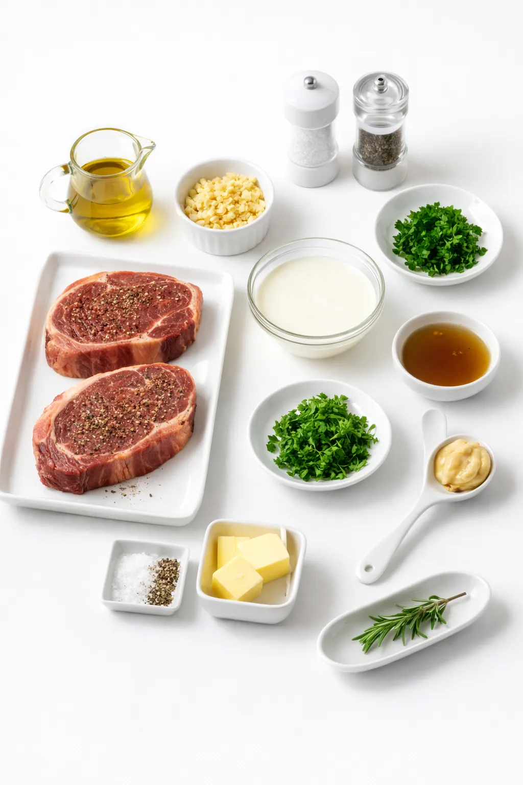 Ingredients for the Juicy Steak with Creamy Garlic Sauce
