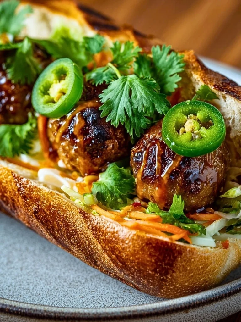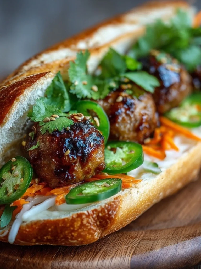 With sticky-sweet glazed meatballs, crunchy pickled vegetables, creamy mayo, fresh herbs, and a kick of heat from jalapeños, every bite delivers a balanced punch. This sandwich isn’t just a meal; it’s an experience. Whether you’re entertaining guests, meal-prepping for the week, or just craving something next-level for lunch, this banh mi will become a repeat favorite.