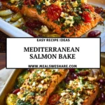 Keywords: Mediterranean salmon, salmon dinner, easy salmon bake, sheet pan salmon, healthy dinner ideas