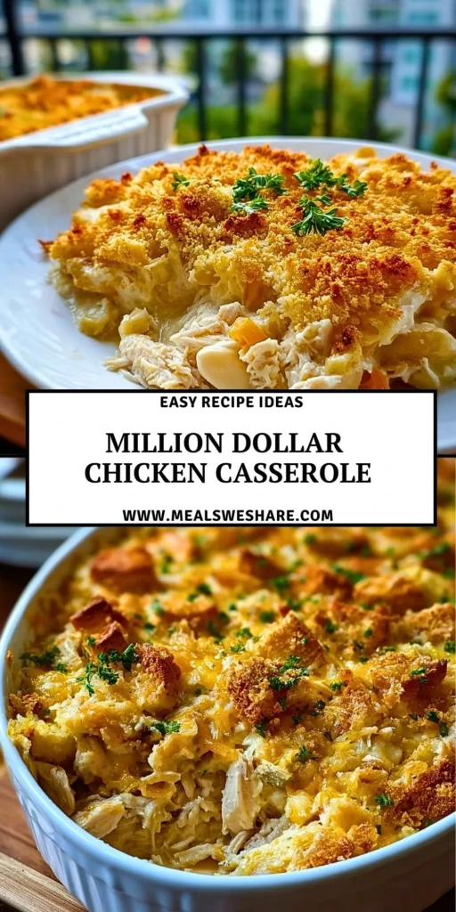 Million Dollar Chicken Casserole is the kind of dish that turns an ordinary night into something special. It’s rich, creamy, and made with love — perfect for busy weeknights, family gatherings, or meal prep. With just a handful of simple ingredients, you’ll have a satisfying, hearty meal everyone will want seconds of. Give it a try and bring a little “million dollar” magic to your dinner table!