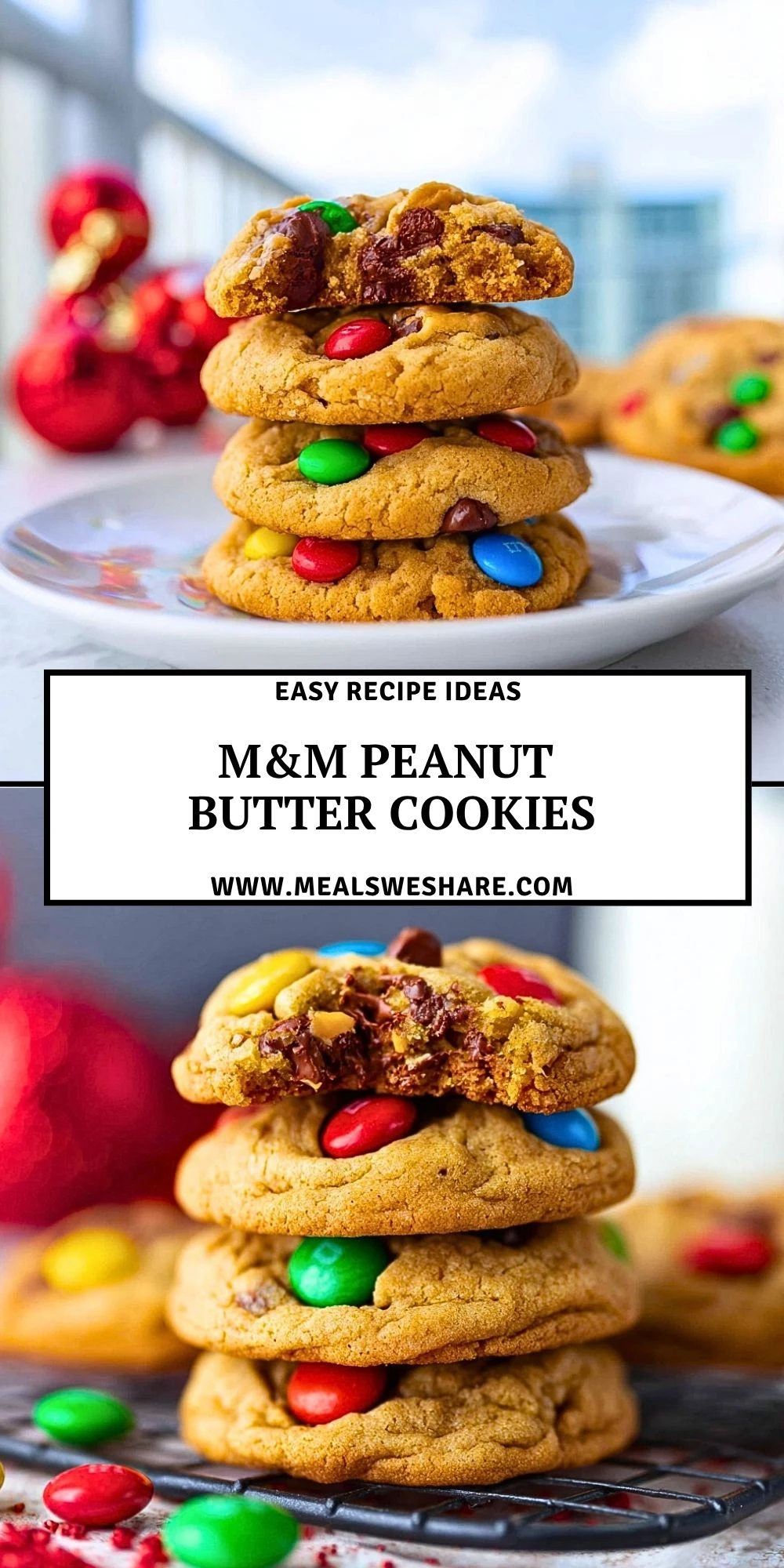 Keywords: M&M Peanut Butter Cookies, peanut butter cookies, easy cookie recipe, soft and chewy cookies, holiday cookies, dessert ideas, homemade cookies