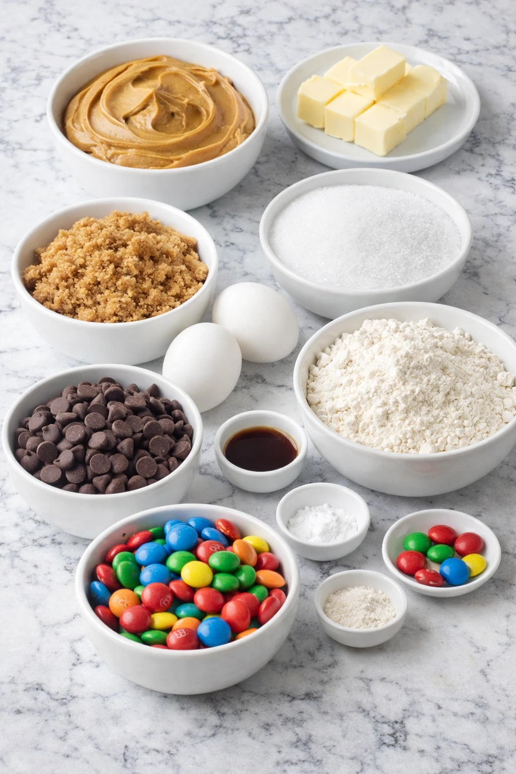 Ingredients for the M&M Peanut Butter Cookies