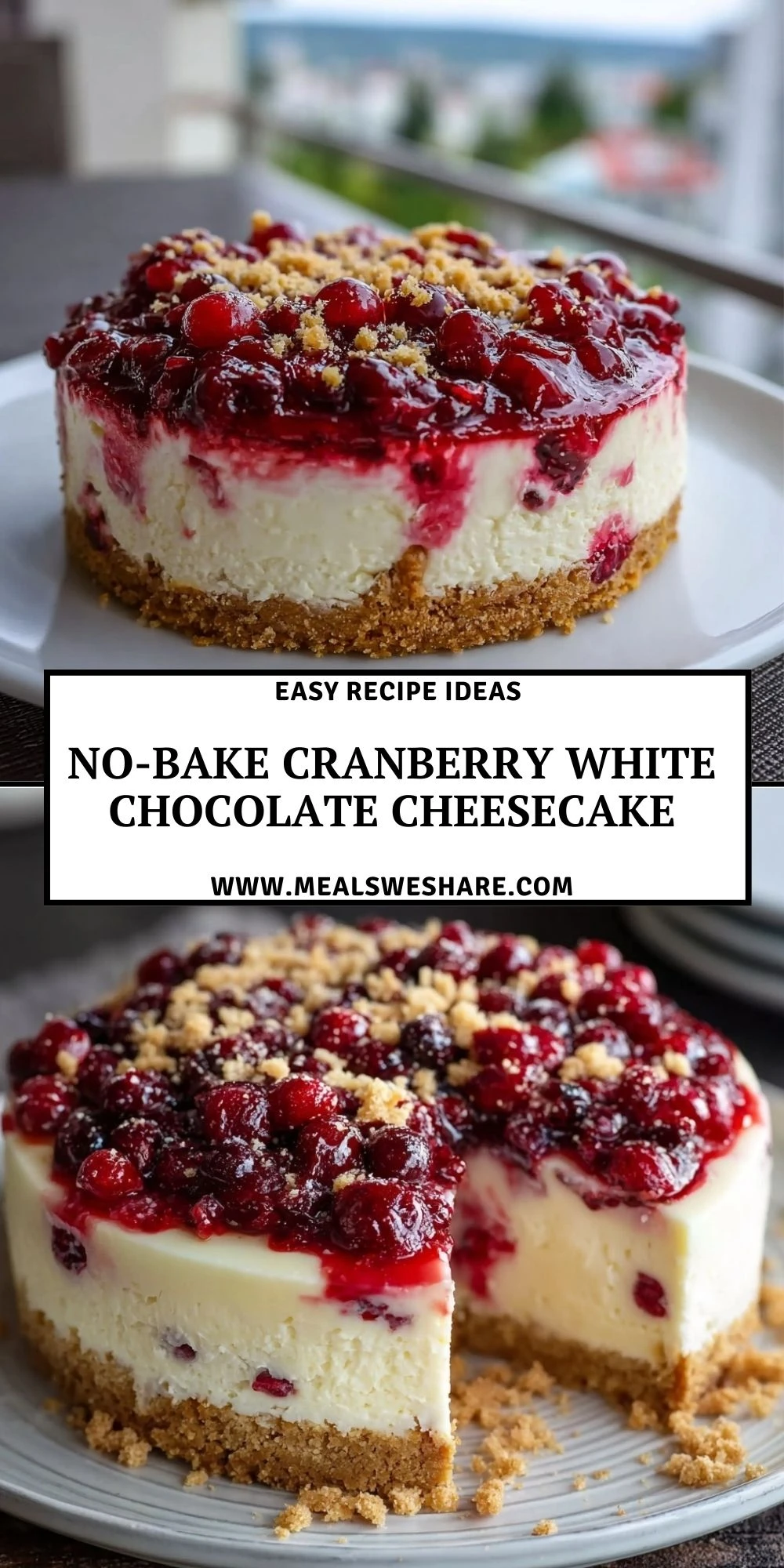 Keywords: no bake cranberry white chocolate cheesecake, no bake cheesecake, cranberry cheesecake, holiday dessert, christmas dessert, easy recipe, dessert ideas
