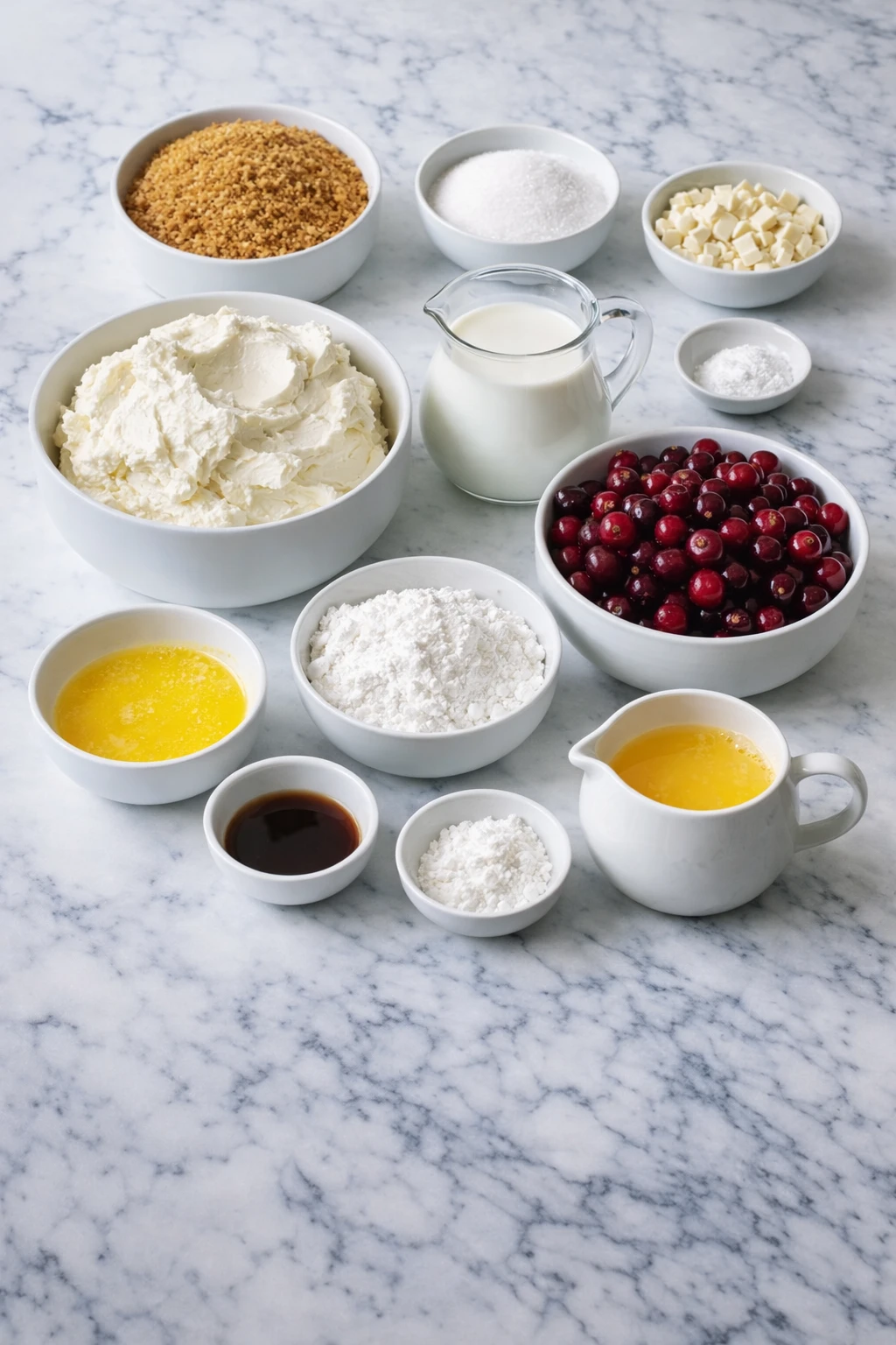 Before you start, it helps to understand why each ingredient earns its place in this dessert. Every component has a job, from creating a sturdy crust to giving the filling its luscious texture and the topping its festive tang.