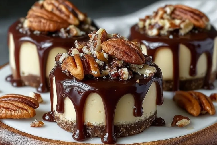 What makes these cheesecakes truly special is the balance of textures — the smooth and velvety cream cheese layer, the luscious chocolate ganache drip, and the irresistible crunch of chopped pecans. Plus, no baking required means they’re a total win for anyone who wants an impressive dessert without heating up the kitchen.
