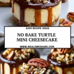 Looking for a quick dessert that’s rich, creamy, and impossibly delicious? These No Bake Turtle Mini Cheesecakes are everything you love about the classic turtle flavor—chocolate, caramel, pecans, and silky cheesecake—all in a convenient, no-bake, bite-sized form. Ideal for quick breakfast treats, elegant dessert ideas, or make-ahead snacks, this easy recipe is a dream for anyone needing a stress-free sweet fix. Great for parties, holidays, or cozy nights in!