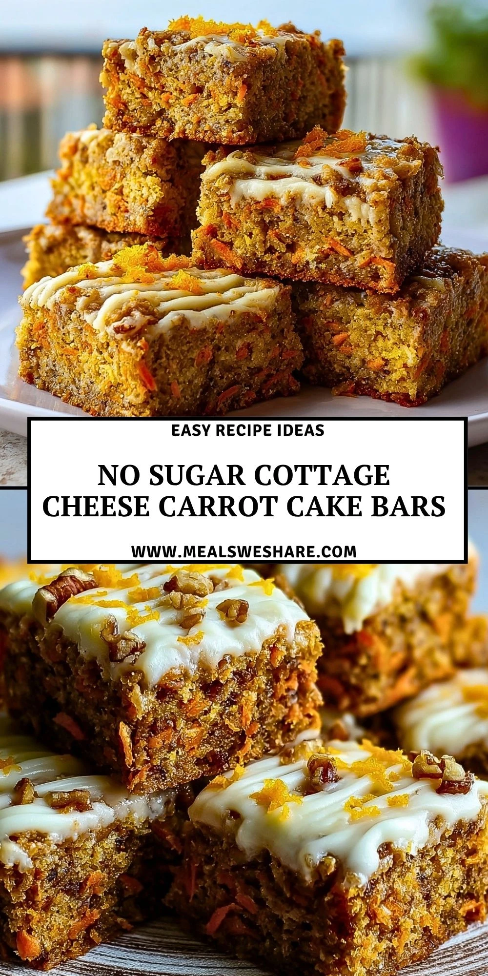 Keywords: no sugar cottage cheese carrot cake bars, carrot cake bars, healthy snack, quick breakfast, easy dessert, breakfast ideas, food ideas, cottage cheese recipe