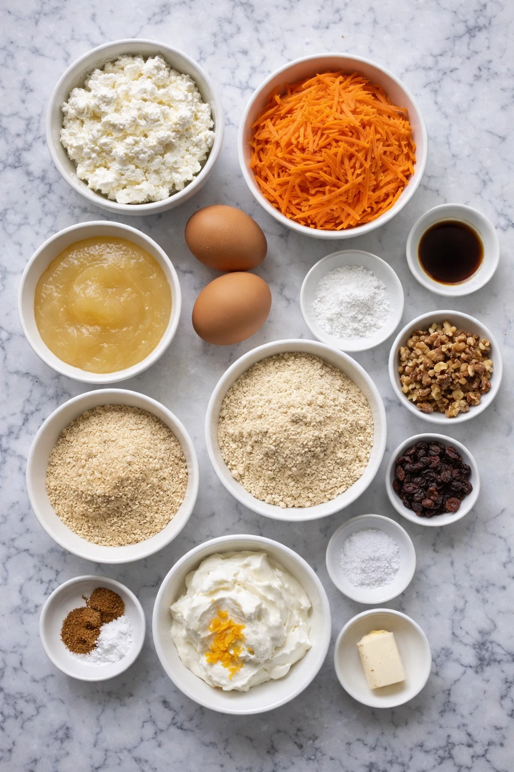 Ingredients for the No Sugar Cottage Cheese Carrot Cake Bars