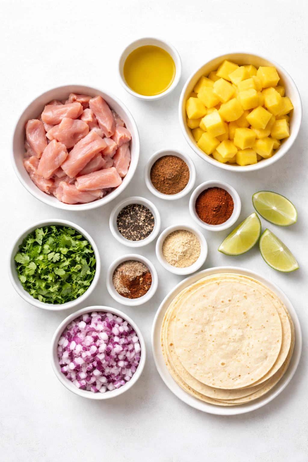 Ingredients for the One Pan Chicken and Pineapple Tacos