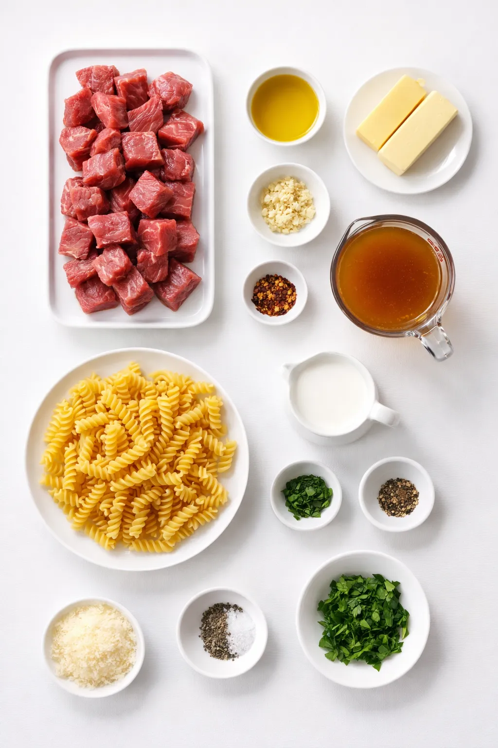 Ingredients for the One Pot Creamy Spicy Garlic Butter Steak & Pasta