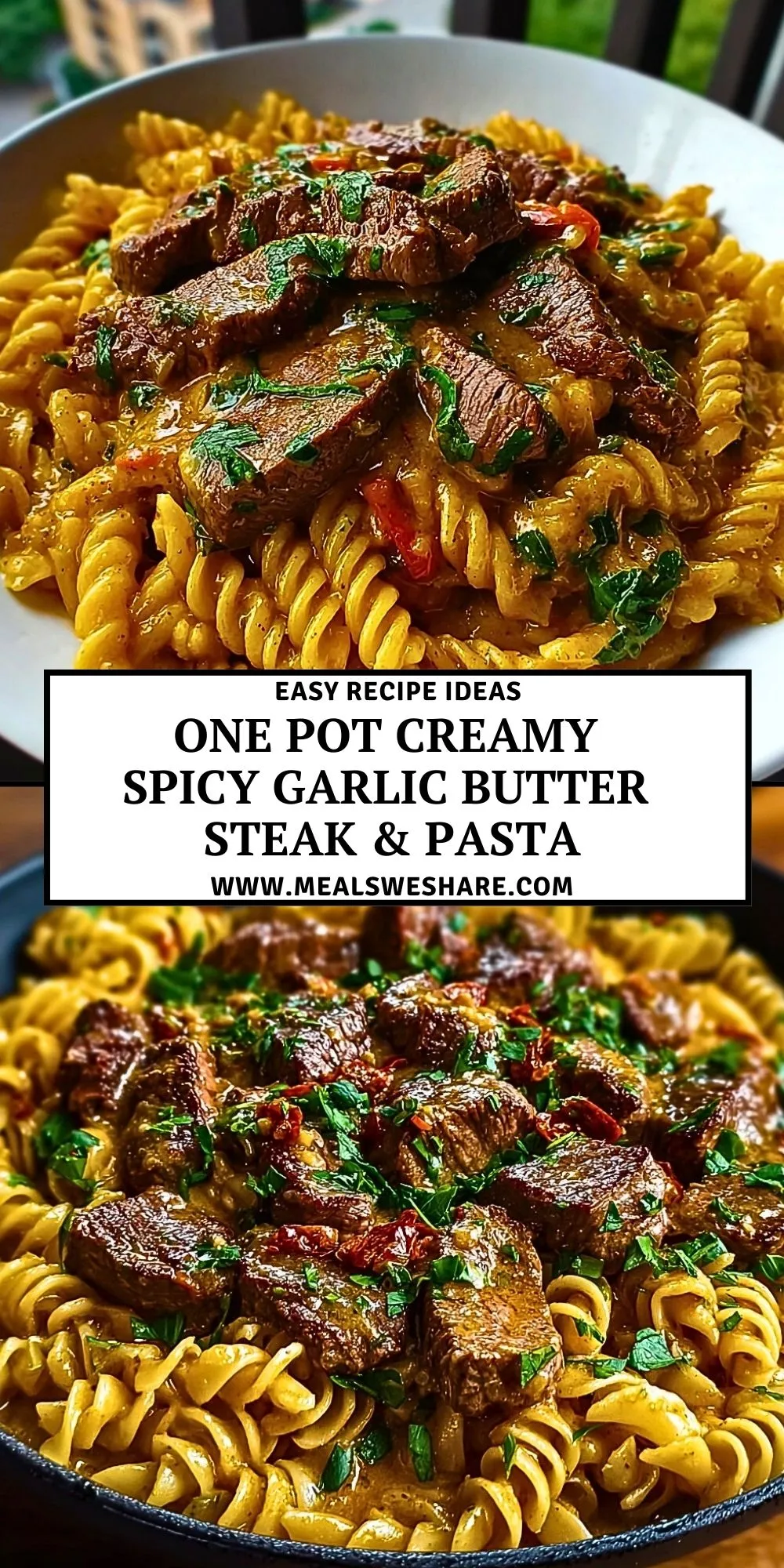 One Pot Creamy Spicy Garlic Butter Steak & Pasta