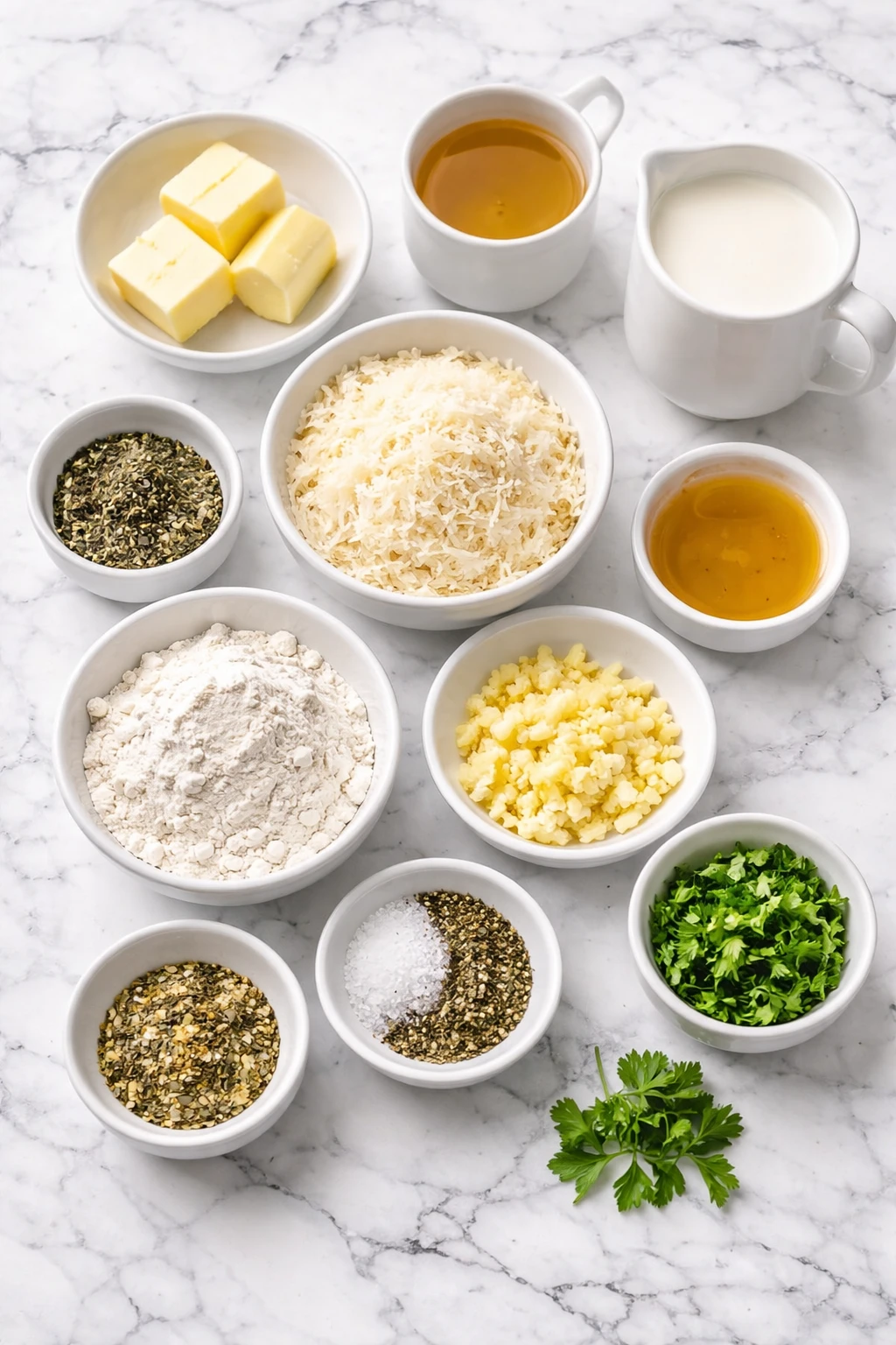 Ingredients for the One Pot Garlic Parmesan Sauce