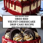 If you’re looking to impress at your next celebration or simply want to indulge in something decadent, the Oreo Red Velvet Cheesecake Drip Cake is the ultimate showstopper. This luxurious dessert combines the velvety richness of classic red velvet cake with the creamy delight of Oreo cheesecake, all crowned with a luscious red drip and topped with whipped cream and Oreo cookies. It’s a masterpiece of texture and flavor that will have everyone asking for seconds.