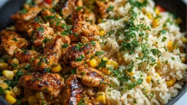 Chicken and Corn Skillet with Garlic Parmesan Rice