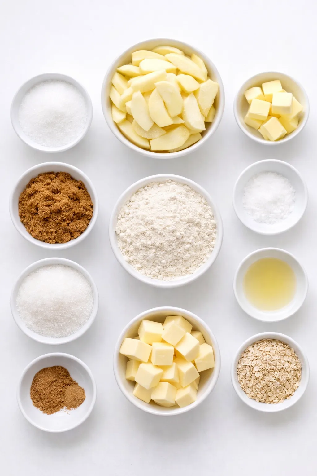- All-purpose flour (3/4 cup): Thickens the apple mixture and forms the crumble.