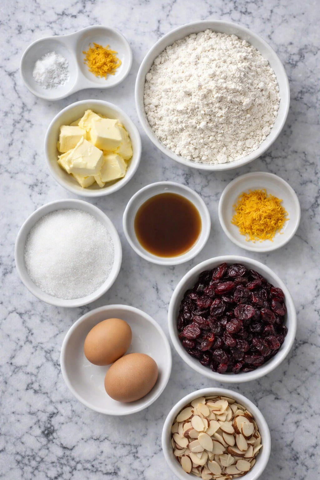 Each ingredient in Perfect Cranberry Biscotti plays an important role in building the right texture and flavor. Using simple, reliable ingredients is what helps these cookies bake up crisp, slice cleanly, and stay delicious for days.