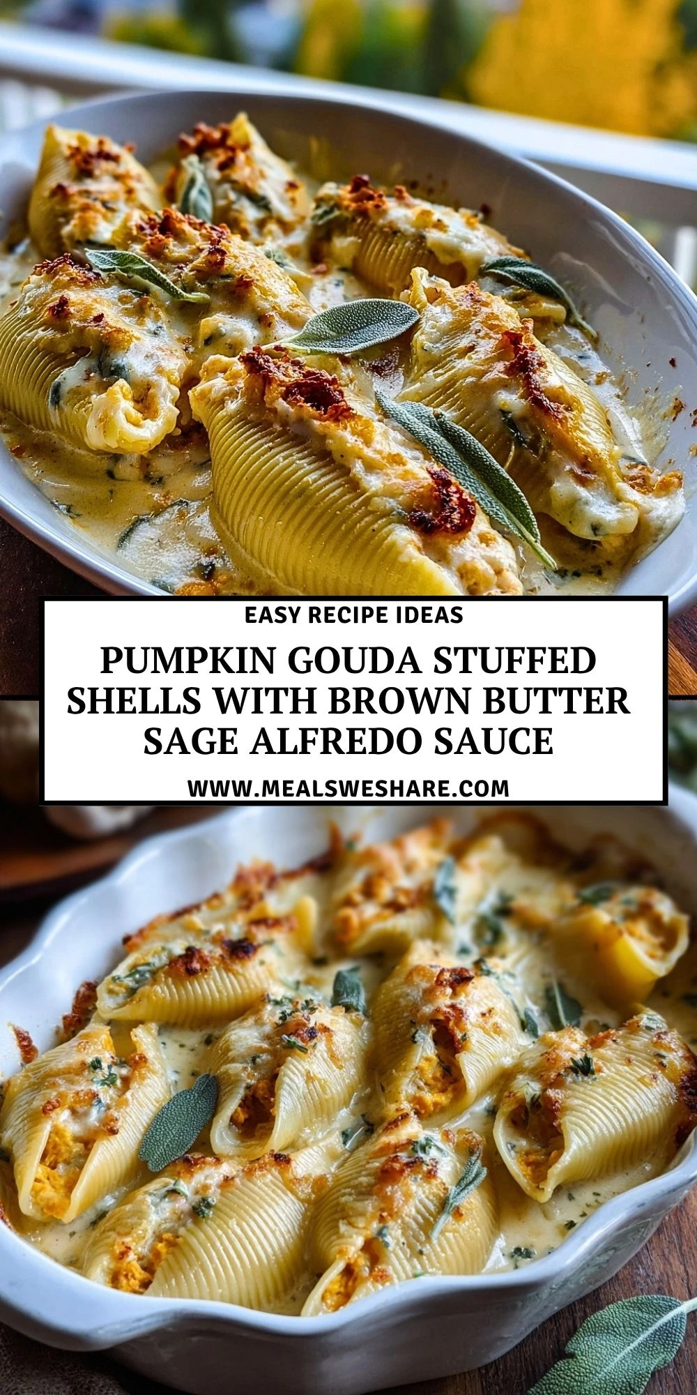 Keywords: pumpkin stuffed shells, gouda stuffed shells, brown butter sage alfredo, baked pasta, easy dinner, cozy dinner, holiday dinner, comfort food, pumpkin pasta, stuffed shell recipe