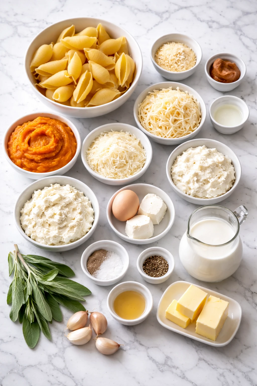 Ingredients for the Pumpkin Gouda Stuffed Shells With Brown Butter Sage Alfredo Sauce