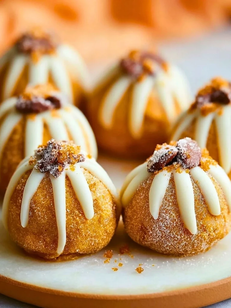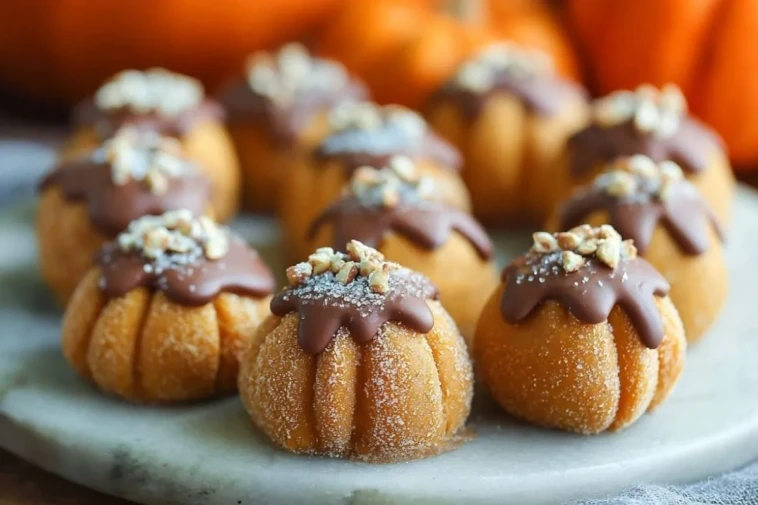 Welcome the cozy season with these irresistible Pumpkin Pie Cheesecake Truffles — the perfect bite-sized treat to satisfy your fall dessert cravings. These adorable, pumpkin-shaped delights are made with a creamy pumpkin-spiced cheesecake filling, coated in a dusting of sugar, drizzled with melted chocolate, and topped with chopped pecans for the perfect crunch.