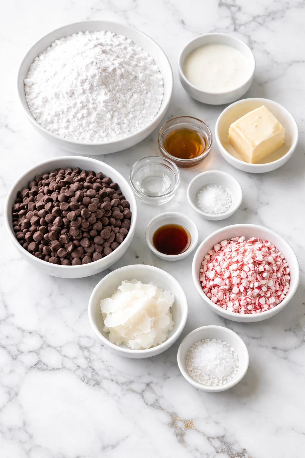 This recipe uses simple baking staples plus peppermint extract to create that classic candy‑shop flavor. Since everything is no‑bake, each ingredient really matters for texture and taste.