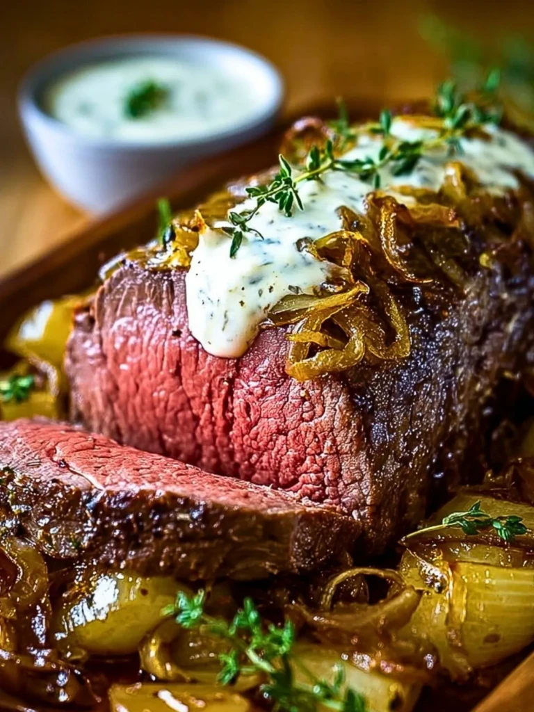 Roasted Beef Tenderloin with French Onions and Horseradish Sauce is a dish that brings elegance, comfort, and incredible flavor to your table. It’s the kind of meal that turns an ordinary evening into something special. With a few quality ingredients and a little technique, you’ll have a show-stopping centerpiece that’s sure to earn applause. Serve it for holidays, anniversaries, or simply when you want to treat the people you love.