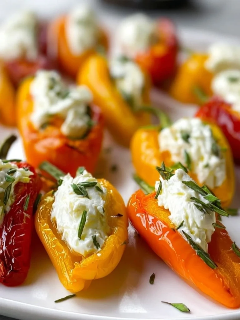 Keywords: roasted mini peppers, goat cheese appetizer, easy recipe, healthy snack, food ideas, quick appetizer, party food, vegetarian appetizer