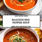 Keywords: roasted red pepper soup, easy soup recipe, healthy soup, vegan option, quick dinner