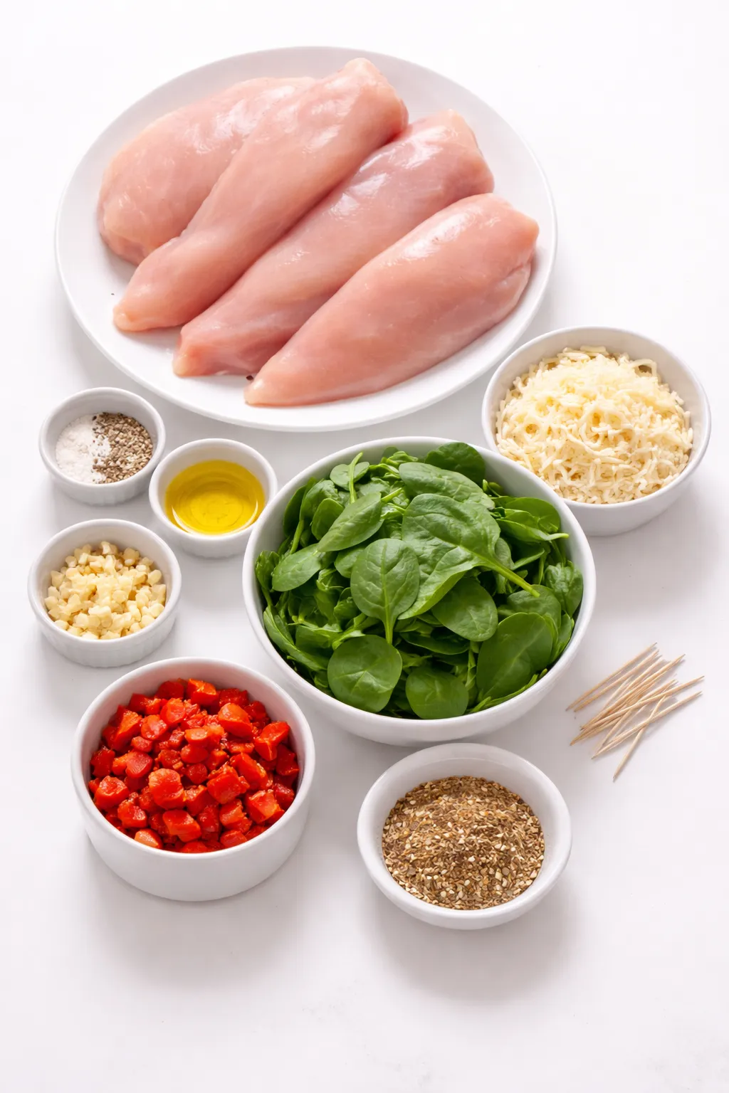 - Boneless skinless chicken breasts (4 medium) – The perfect canvas for stuffing, tender and lean.