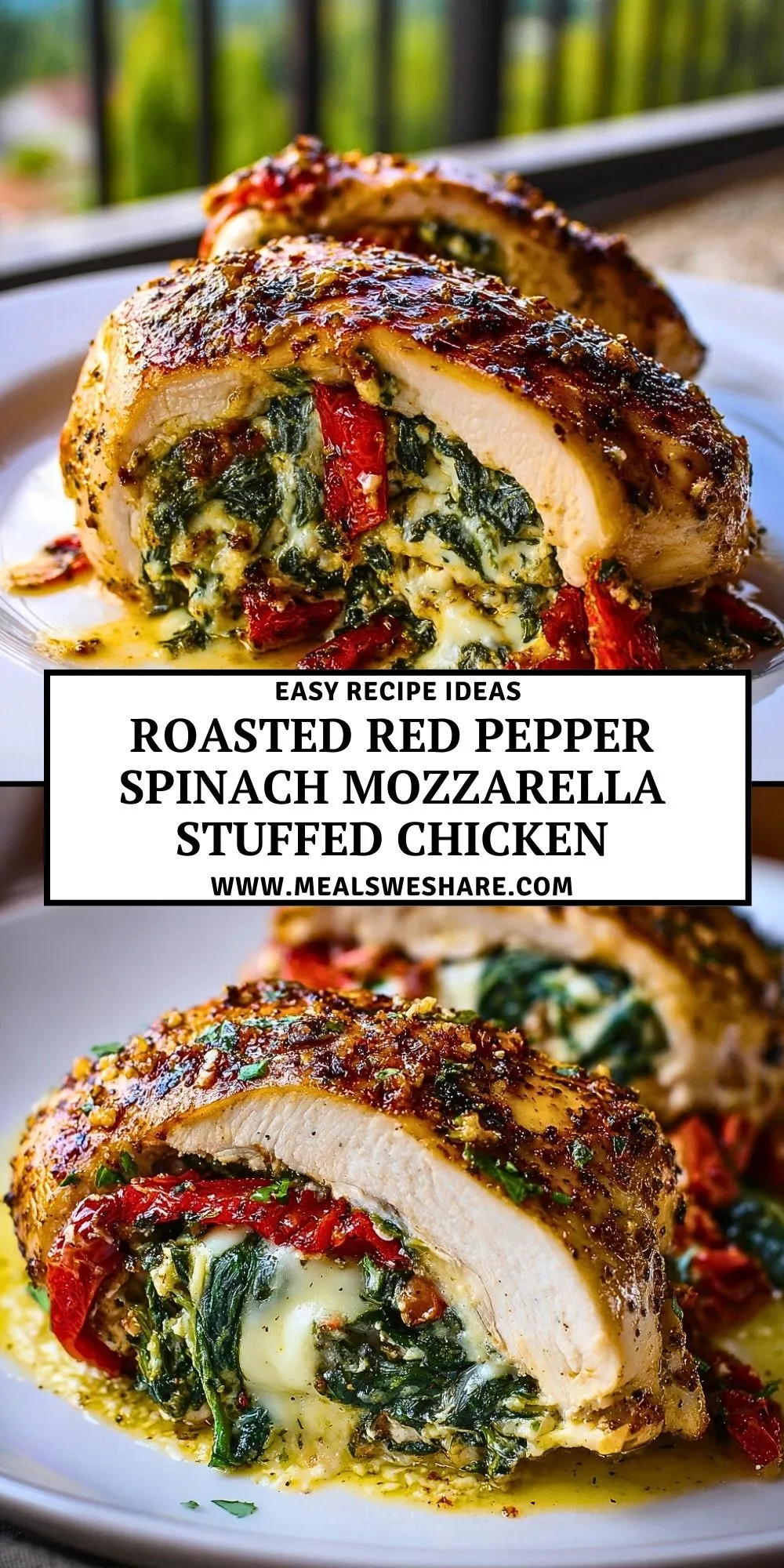 Roasted Red Pepper Spinach Mozzarella Stuffed Chicken