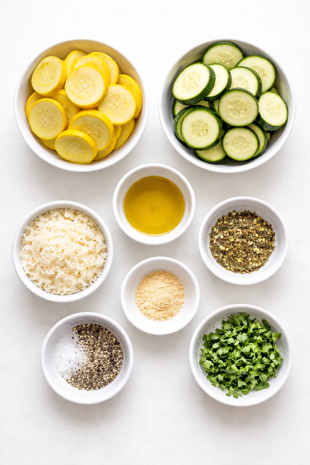 Zucchini – Balances the yellow squash with its slightly firmer texture and earthy flavor.