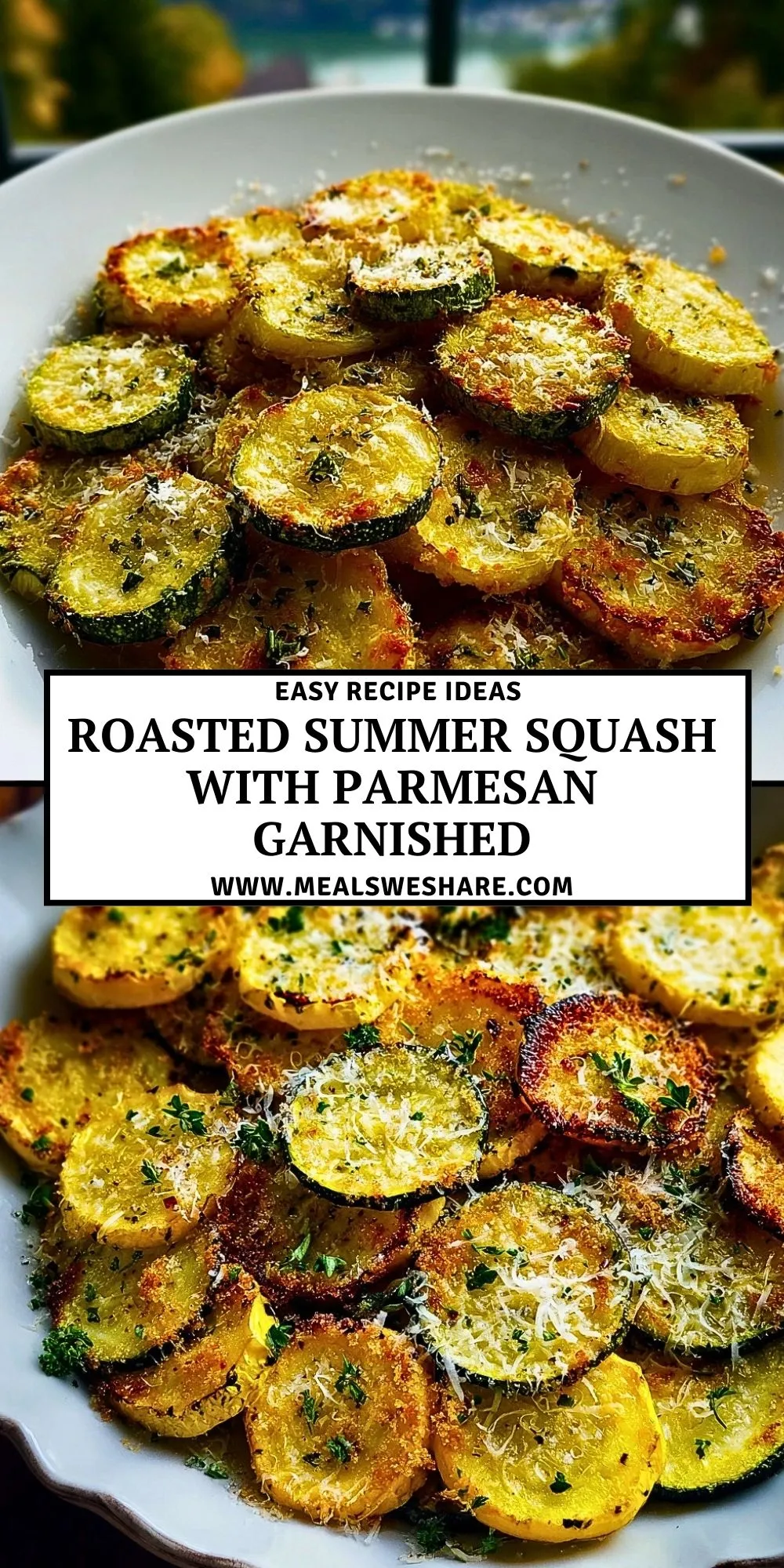 Roasted Summer Squash with Parmesan is a perfect side dish to showcase the fresh flavors of summer produce. The thin rounds of yellow squash and zucchini get roasted until tender and golden, then topped with freshly grated Parmesan and a sprinkle of herbs for a simple but irresistible finish.