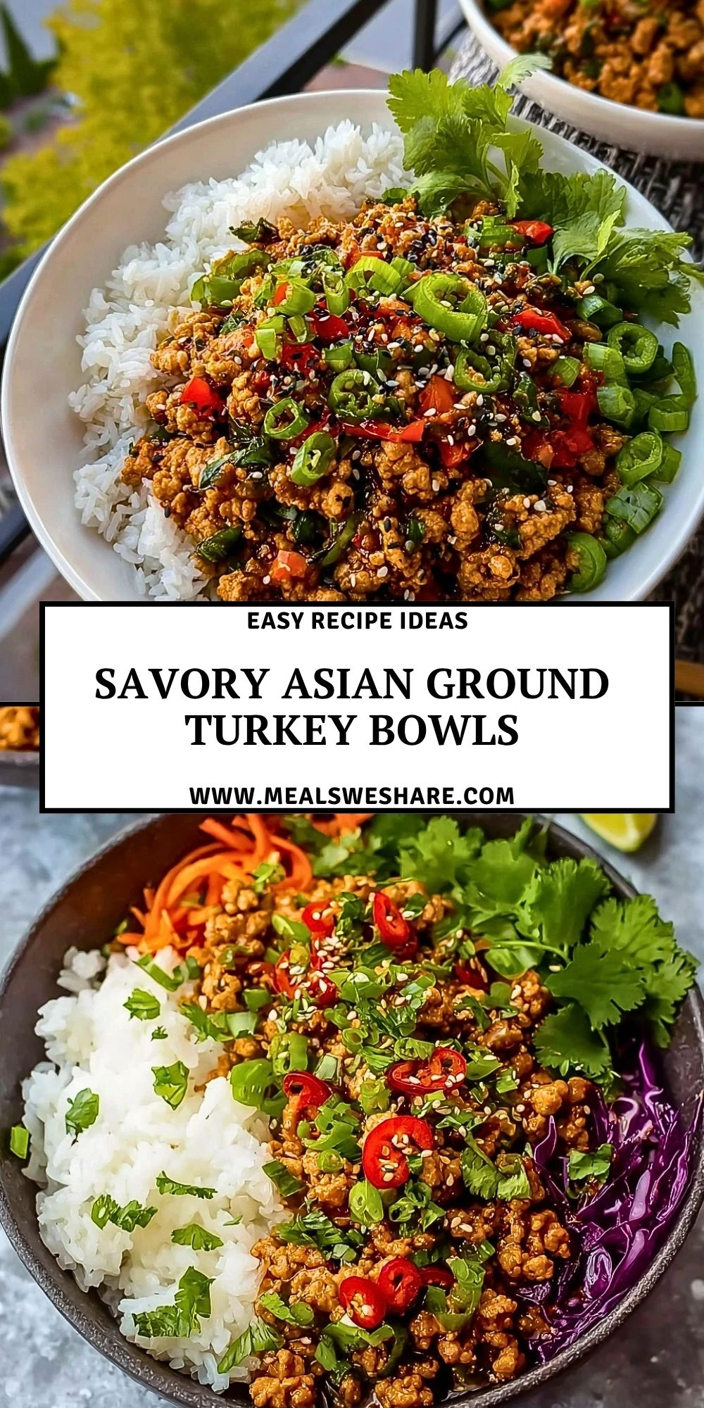 Keywords: savory Asian ground turkey bowls, ground turkey rice bowls, quick dinner, easy recipe, healthy meal prep, weeknight dinner ideas, protein-packed bowls, Asian-inspired dinner