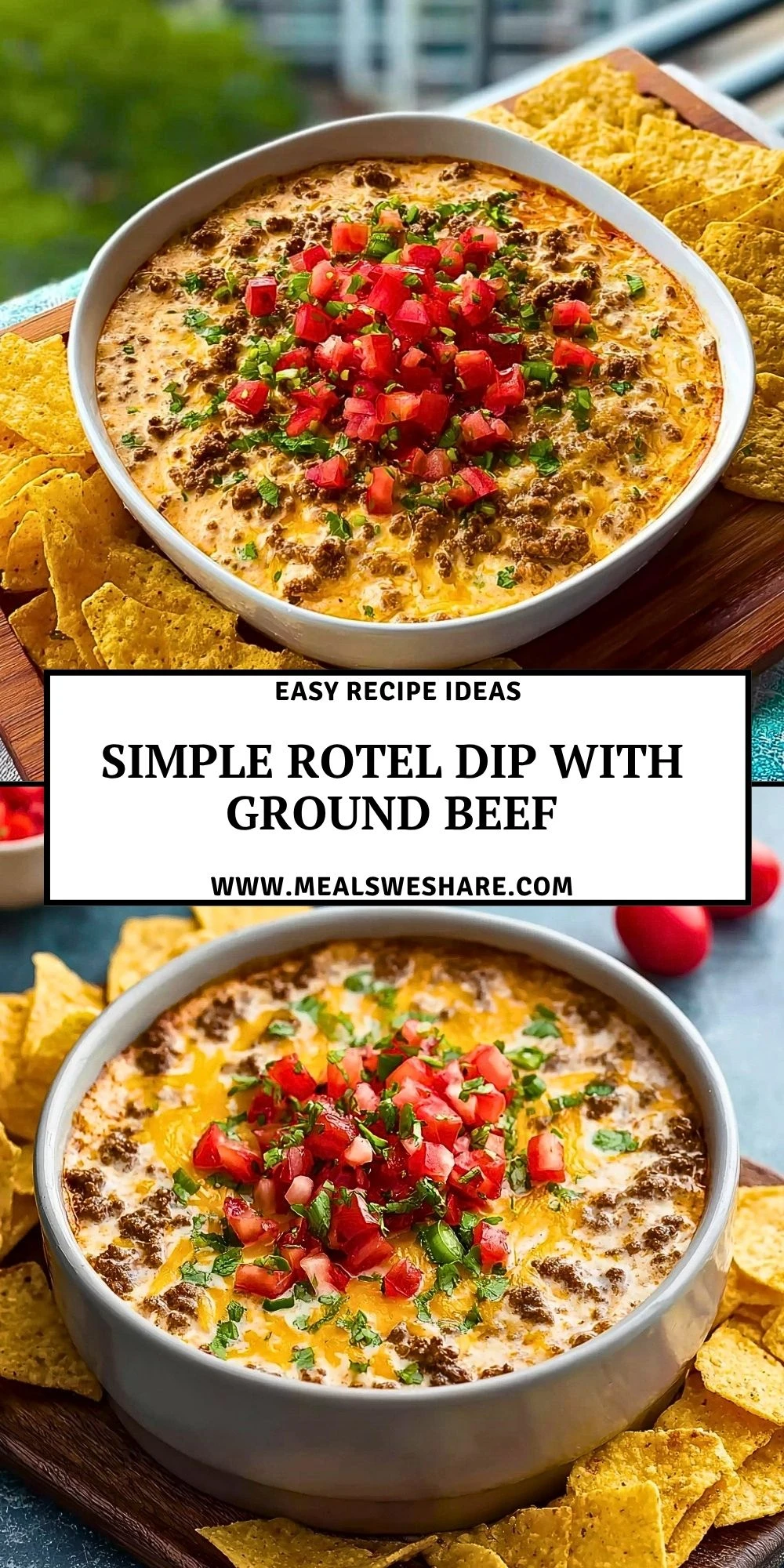 Keywords: simple rotel dip with ground beef, rotel dip, easy appetizer, party dip, game day dip, cheesy beef dip, easy recipe, dinner ideas, food ideas