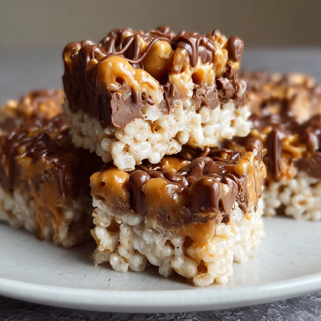 Keywords: Snickers Rice Crispy Treats, no-bake dessert, easy dessert bars, chocolate caramel peanut treats, rice krispie bars, party desserts, holiday treats, sweet snack ideas