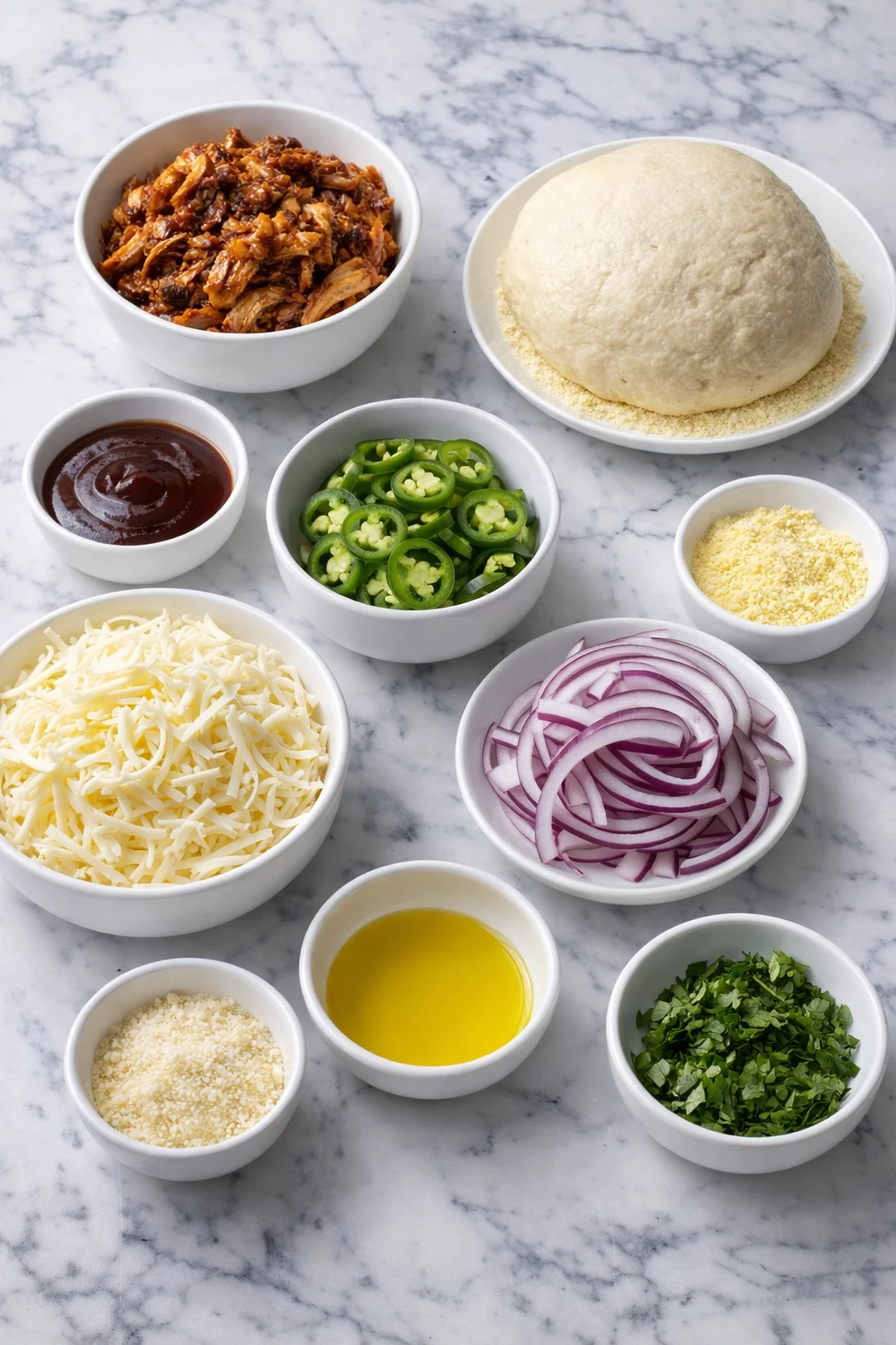 Ingredients for the Spicy Chicken and Pickled Jalapeño Pizza