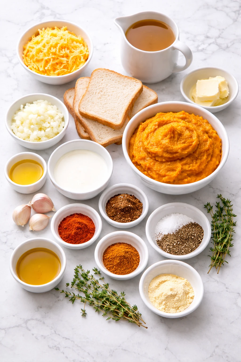 Ingredients for the Spicy Pumpkin Soup with Grilled Cheese Croutons