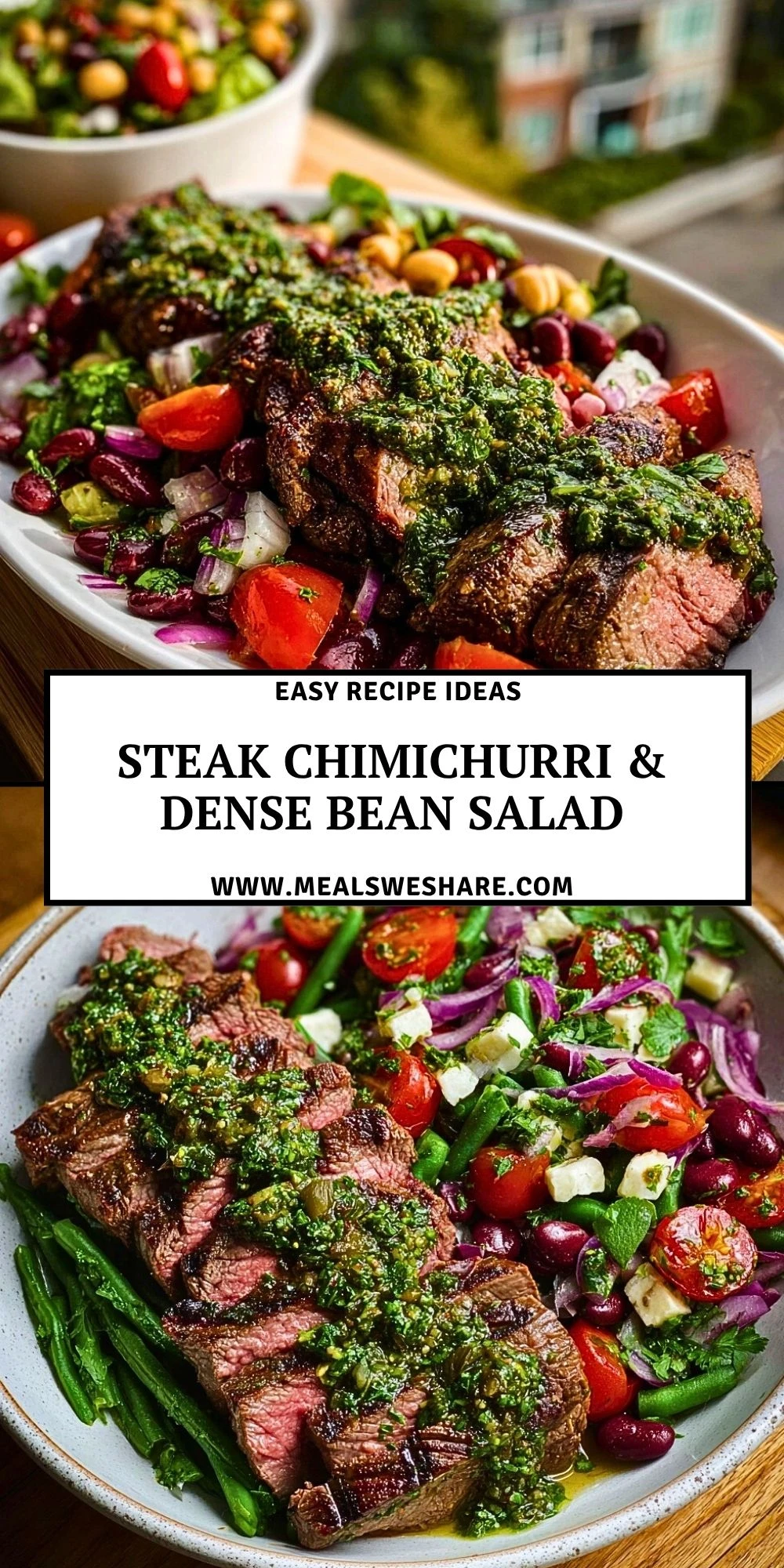 Keywords: steak chimichurri dense bean salad, steak salad, chimichurri steak, easy dinner, healthy lunch, meal prep salad, bean salad