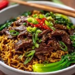 If you’re craving bold, satisfying flavors wrapped in a comforting bowl, these Sticky Beef Noodles are about to become your new favorite. This dish brings together tender strips of beef, coated in a glossy, sticky soy-based sauce, nestled on a bed of springy noodles with crisp greens for balance. It’s sweet, savory, a little spicy, and completely addictive.