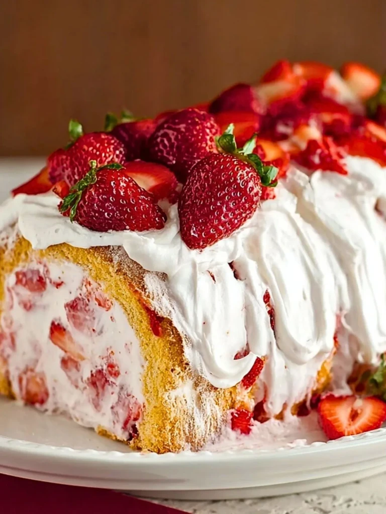 This cake is a dream for so many reasons! First, it requires minimal baking skills—perfect for beginners or anyone short on time. The base is a classic angel food cake, which you can make from scratch or buy pre-made to save even more time. It pairs beautifully with homemade whipped cream and ripe strawberries, creating a fresh, no-fuss dessert that everyone will rave about.
